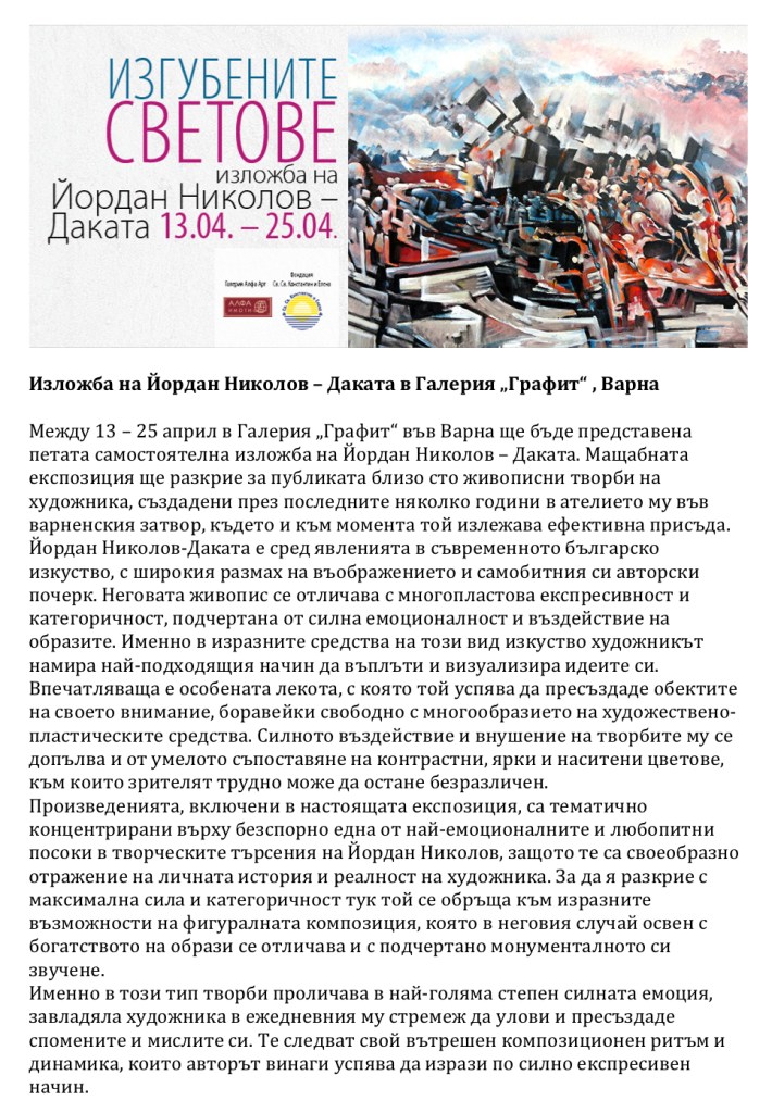 Статия за изложба в галерия “Графити”, гр.Варна https://www.graffitgallery.com/?p=2063